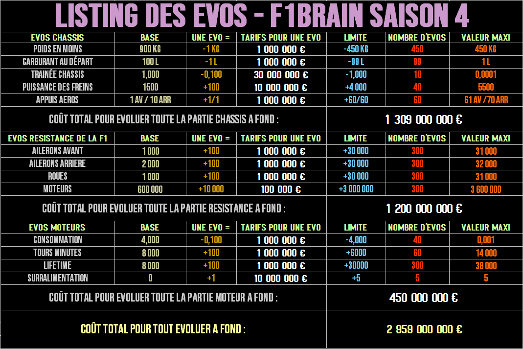 Pour les evos tour minute c'est pas 60 évolution ? Et lifetime 70 non ?