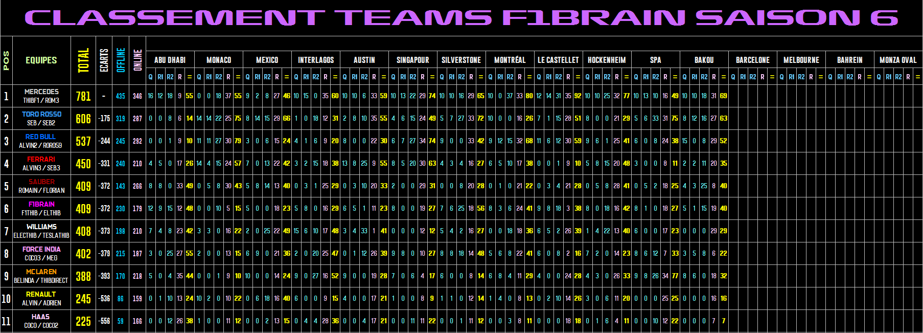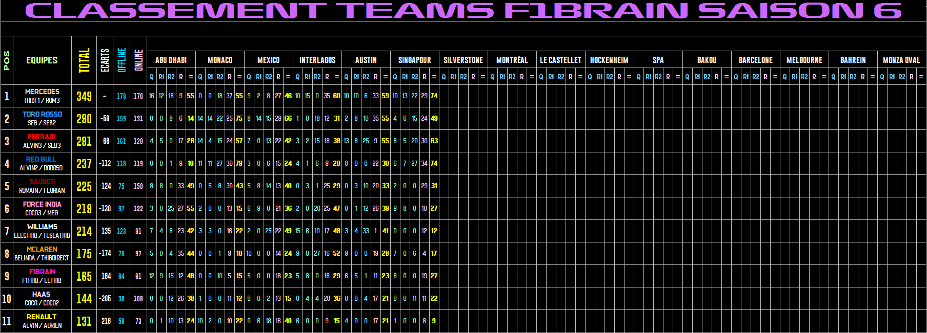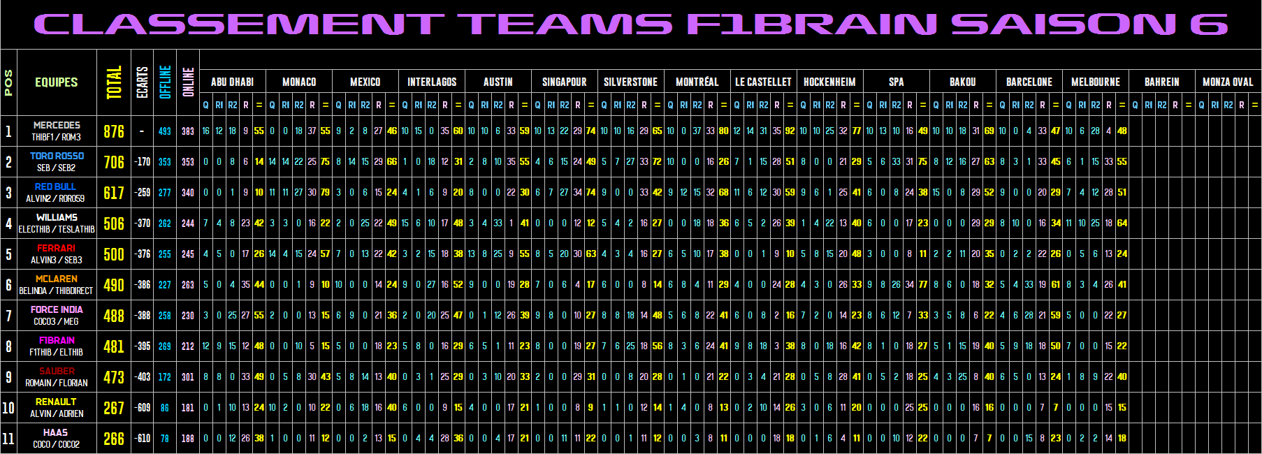 CLASSEMENT CONSTRUCTEURS |
