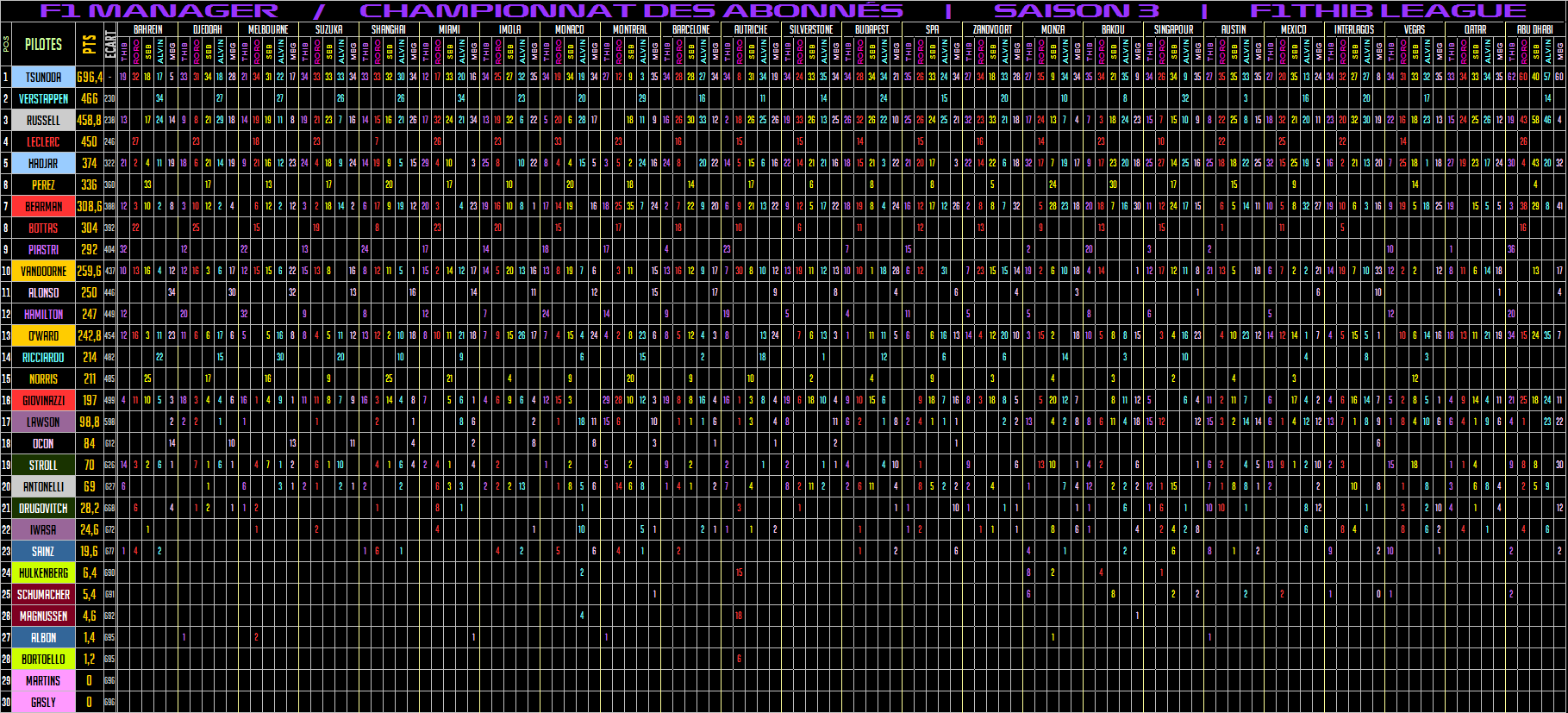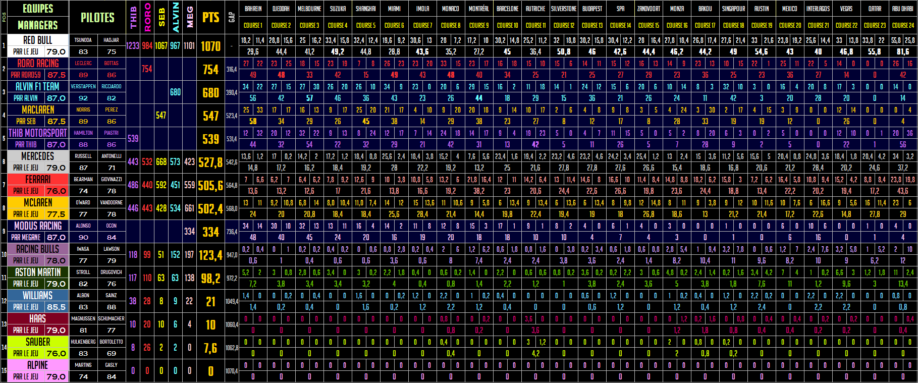 Re: CLASSMENTS PILOTES, JOUEURS & EQUIPES
